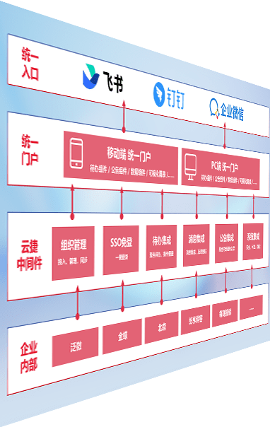 对协作平台提供支持服务,,,支持企业应用与协作平台对接,,包含组织同步、、、、消息集成、、、待办集成等。。支持目前主流的协作平台:钉钉、、企微和飞书。。